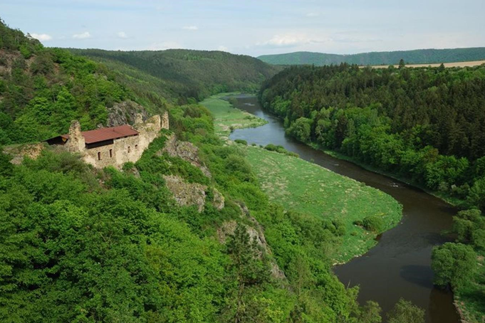 Hrad Krašov - malebný výhled na řeku Berounku.